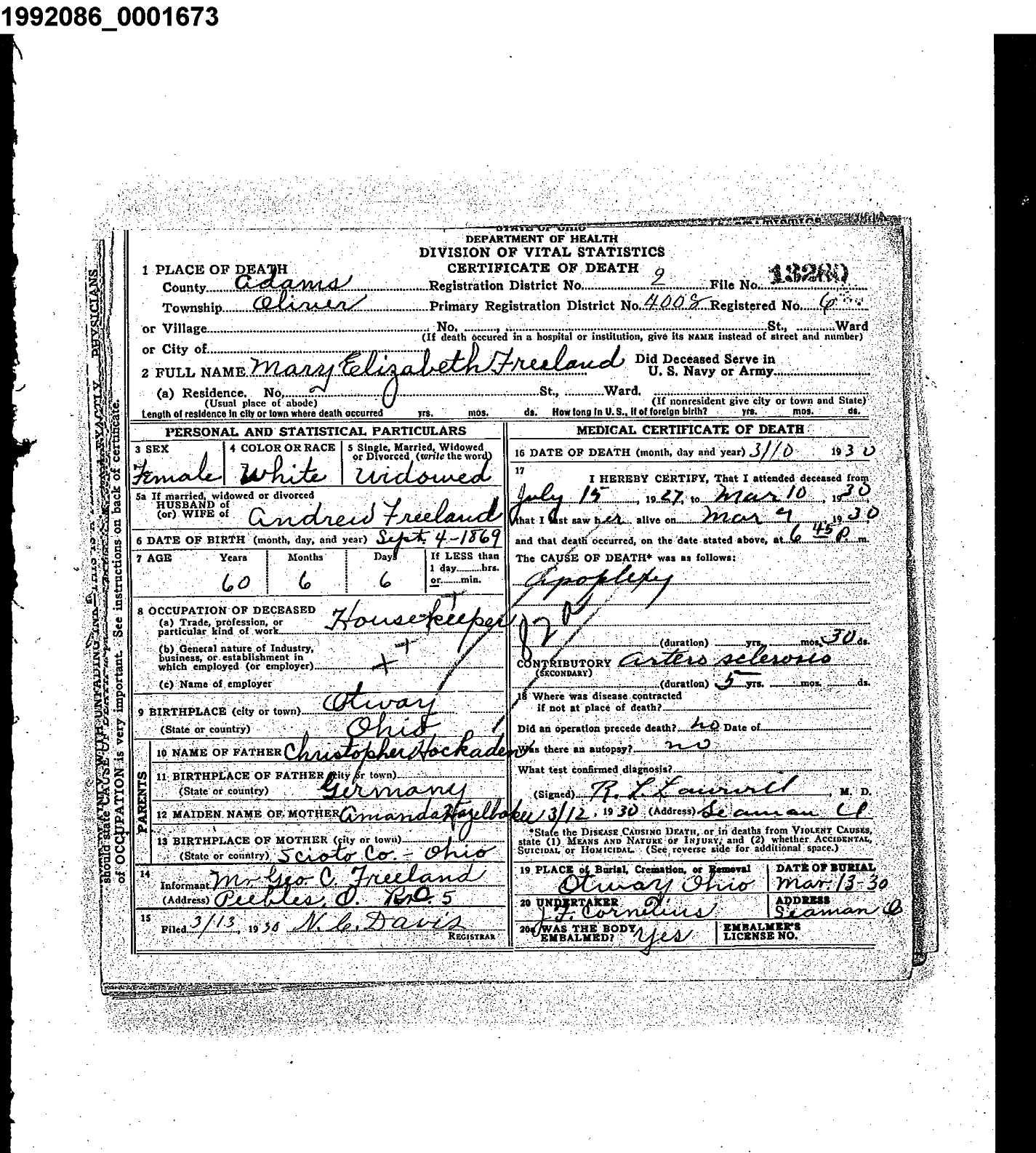 - Freeland - Mary Elizabeth Freeland Death Certificate