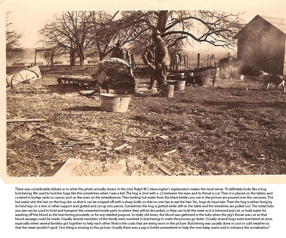 - Added a photo of a possible hog butchering ca. 1920s. Contributed by Lisa Williams.